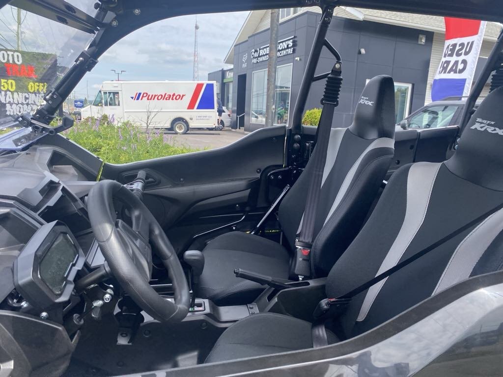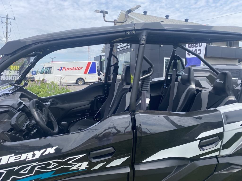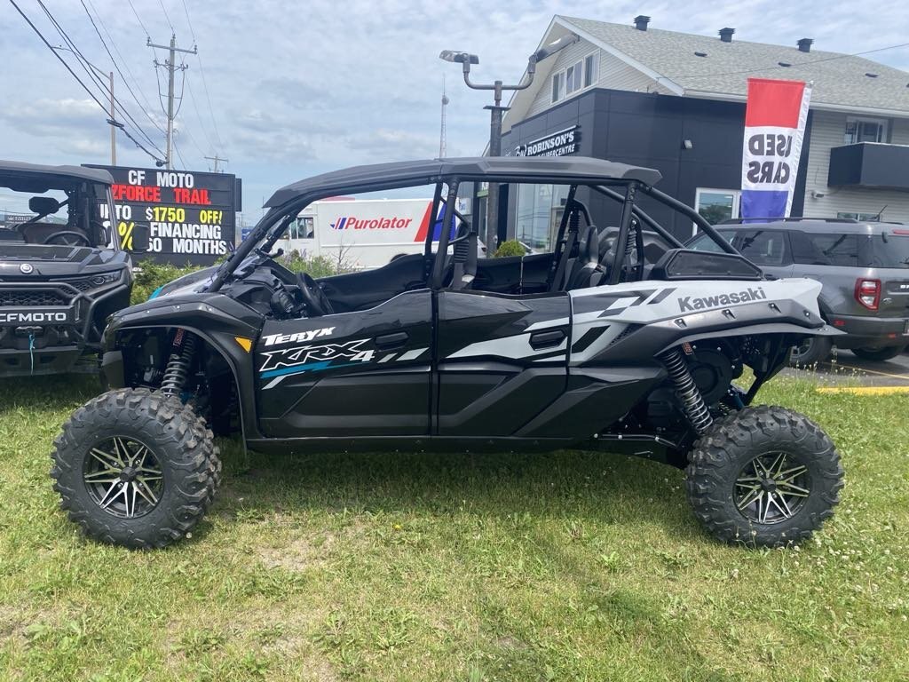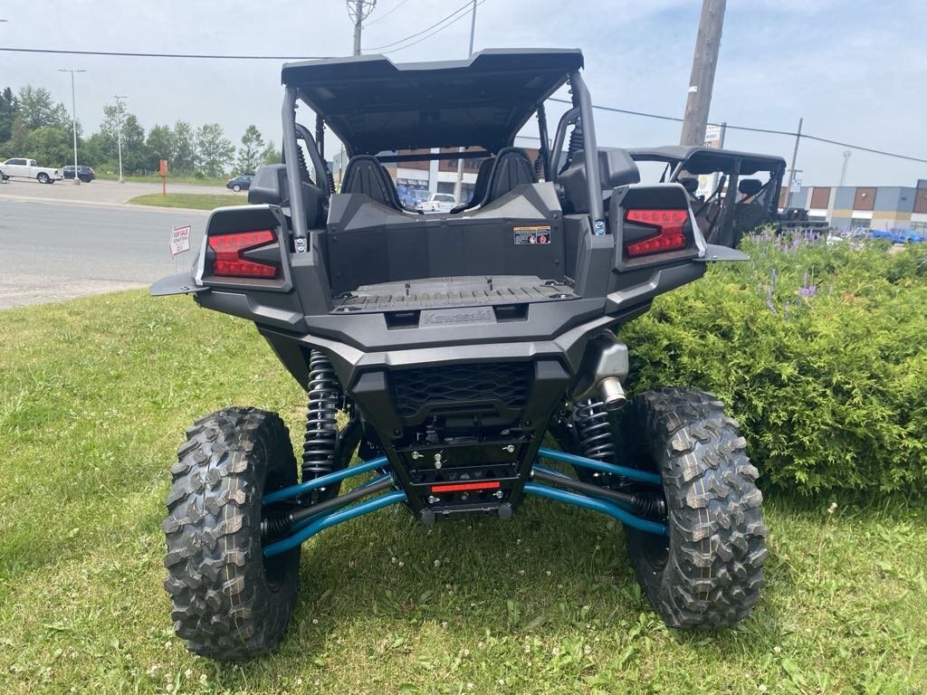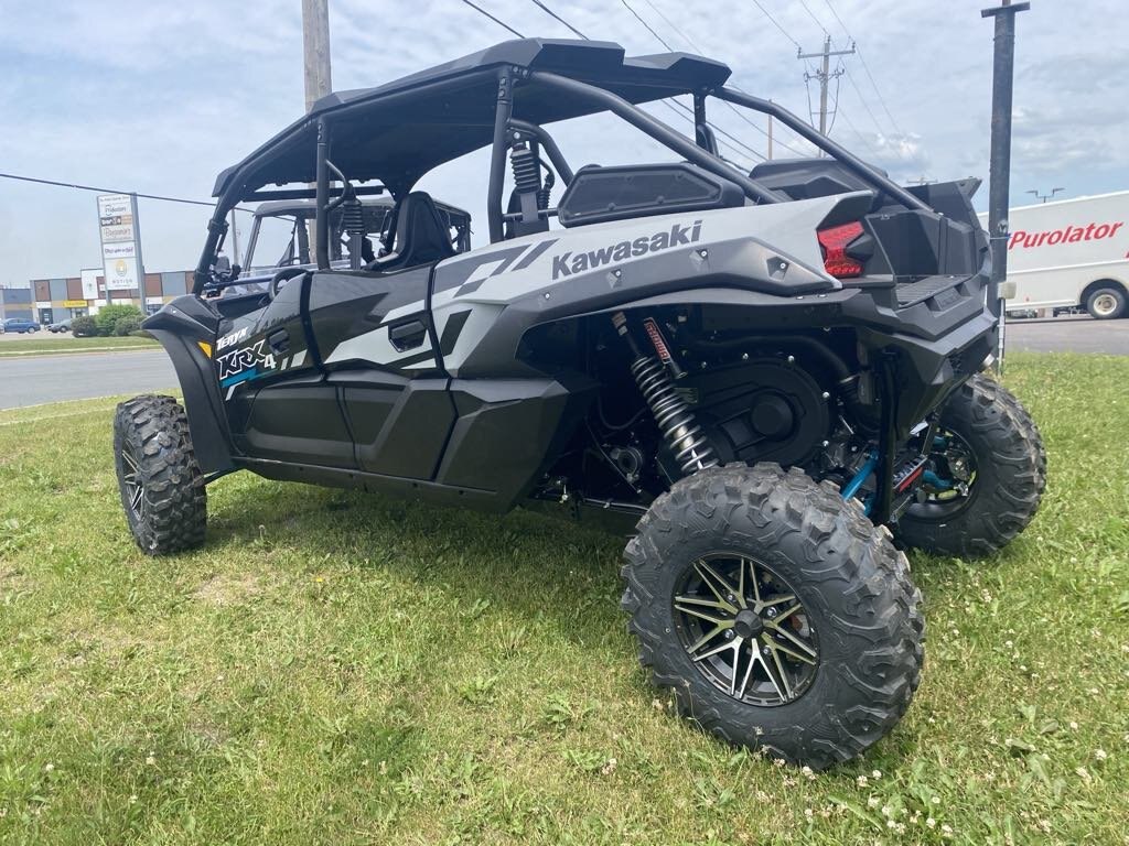 | Share the adventure with more friends and family with four-passenger seating. With an enlarged chassis, no sacrifices were made to accommodate the additional passengers. Advanced electronic suspension technology combined with beefy wheels and tires deliver the ultimate riding experience. The Teryx KRX4 1000 side by side reinforces and elevates the reputation of purpose-built Kawasaki sport side by sides. |