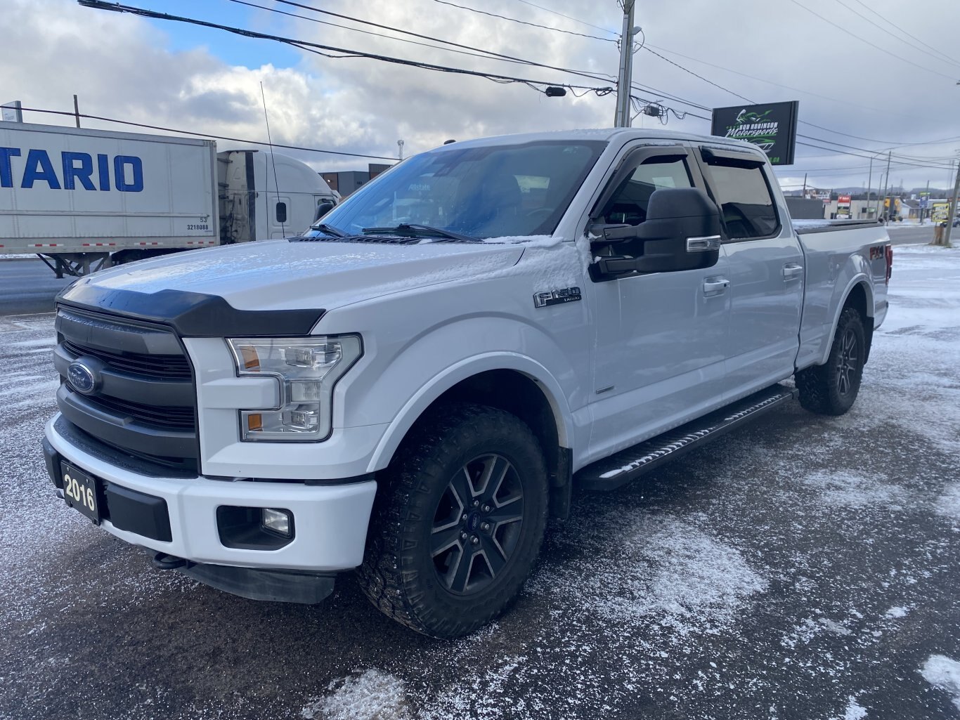 2016 FORD F-150 LARIAT 4X4 SUPERCREW WITH LEATHER SEATS, HEATED/COOLED SEATS, SUNROOF, REMOTE START, TONNEAU COVER, REARVIEW CAMERA AND ONSTAR NAVIGATION!!