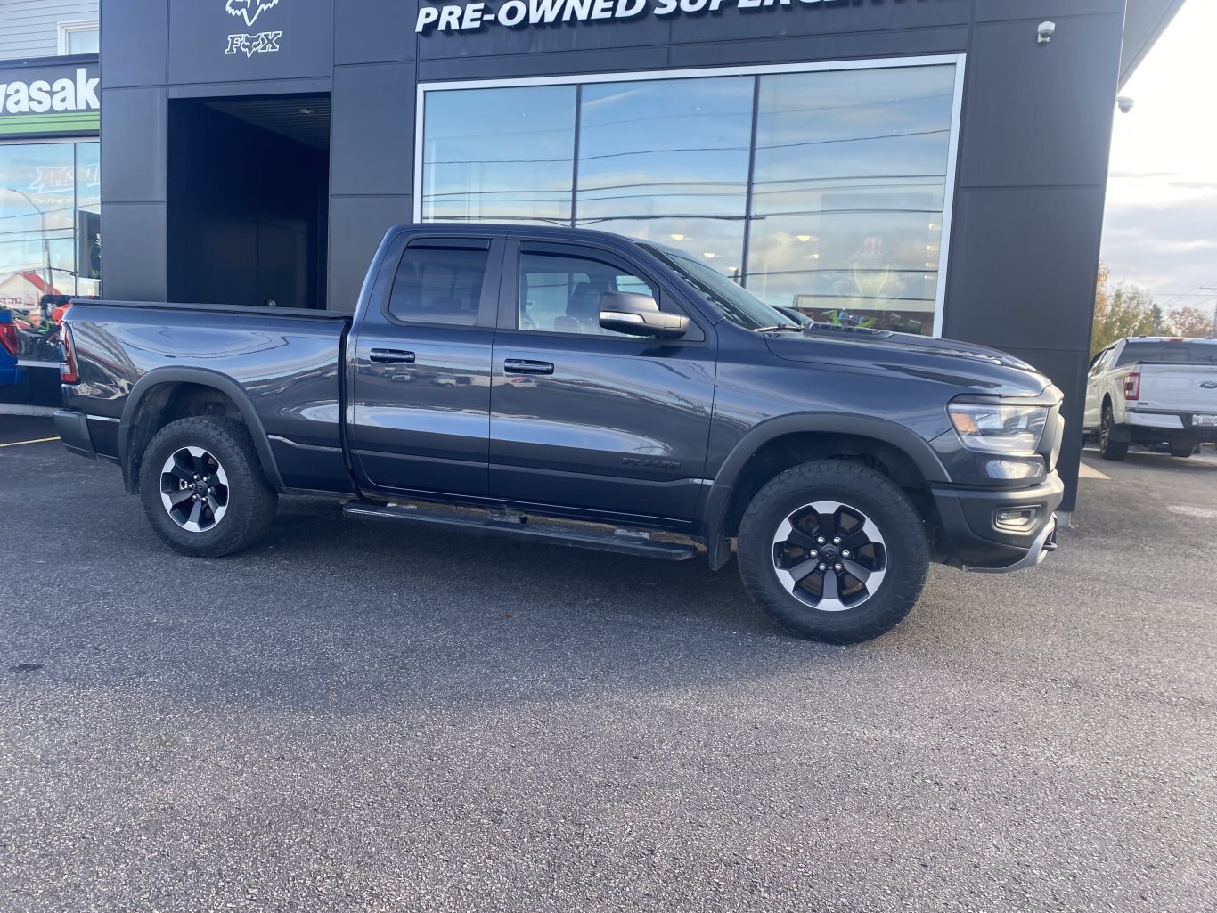 2019 RAM 1500 REBEL 4X4 QUADCAB WITH LEATHER SEATS, TONNEAU COVER, HEATED STEERING WHEEL, REMOTE START, REARVIEW CAMERA AND HEATED SEATS!!